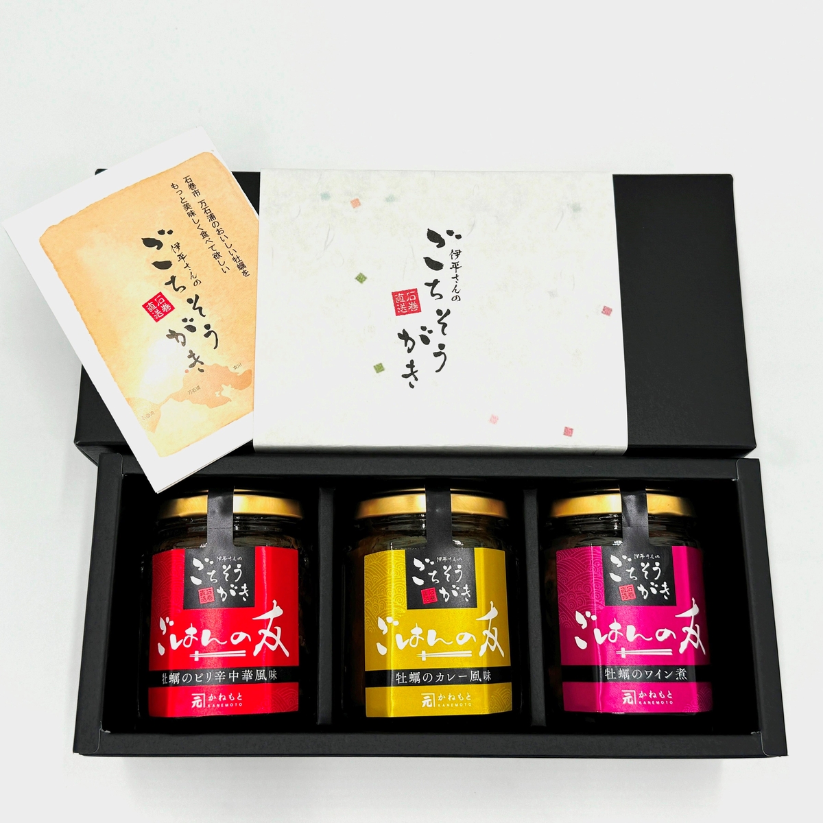 ギフト ごはんの友詰合せ(各100g×3本) 知る人ぞ知る一味違う贈り物 販売価格 3,740円(税込み) 会員価格 3,364円(税込み) 通常価格 3,740円(税込み) 在庫 75 商品コード JANコード 4573422010248 数量 - + カートに入れる カテゴリー ギフト 自社養殖の石巻産牡蠣の身を丸ごと贅沢に使用した牡蠣の佃煮ギフトです。牡蠣の豊かな風味を活かしつつ、どんな方でも牡蠣を楽しめる味3種に仕上げました。懐かしくて新しい石巻・万石浦の美味をお届けします。 ツイートする シェアする RECOMMENDEDおすすめ商品 牡蠣の燻製オイル漬け(ピリ辛タイプ) 1,430円(税込み) ごはんの友ワイン煮(100g) 970円(税込み) ごはんの友カレー風味(100g) 970円(税込み) ごはんの友中華風味(100g) 970円(税込み) ごはんの友詰合せ(各60g×3本) 2,040円(税込み) かねもと公式オンライン 2025年11月 日 月 火 水 木 金 土 1 2 3 4 5 6 7 8 9 10 11 12 13 14 15 16 17 18 19 20 21 22 23 24 25 26 27 28 29 30 2025年12月 日 月 火 水 木 金 土 1 2 3 4 5 6 7 8 9 10 11 12 13 14 15 16 17 18 19 20 21 22 23 24 25 26 27 28 29 30 31 発送休業日 ショッピングガイド 特定商取引法に基づく表記 個人情報保護方針 送料について 会員規約 お問い合わせ